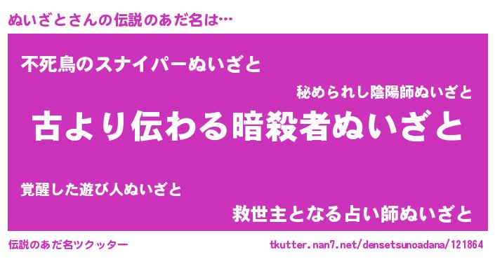 | 意味不明あだ名 | 『住所不定無職ぬいざと(56歳)』 |