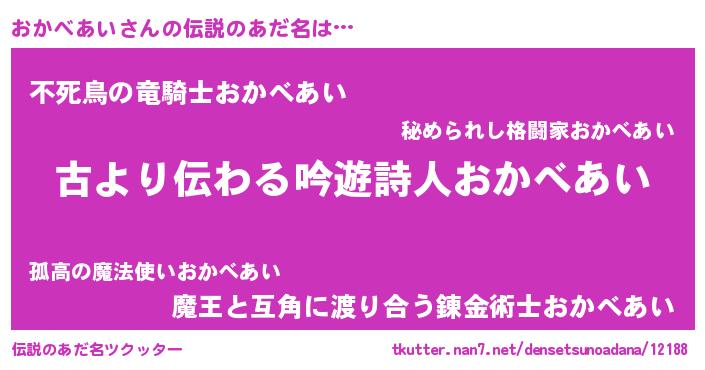 | 意味不明あだ名 | 『永久保存おかべあい』 |
