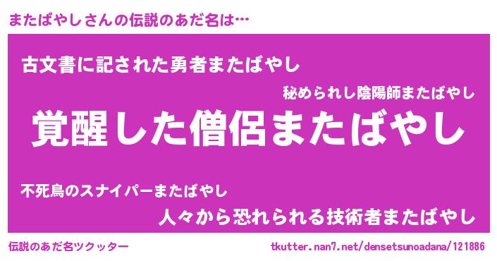 | 男性向けラノベタイトル風あだ名 | 『またばやしの嫁は女の子じゃないと思った?』 |