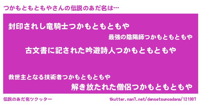 | 意味不明あだ名 | 『永久保存つかもともともや』 |