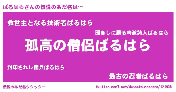 | 胡散臭い通販商品みたいなあだ名 | 『信頼と実績のネックレス…その名も「ばるはら」』 |