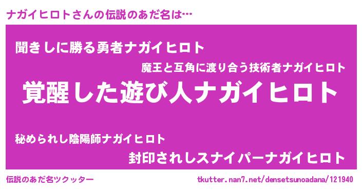 | ポケモン風あだ名 | 『ナーガイ』『ヒナガイヒロト』 |