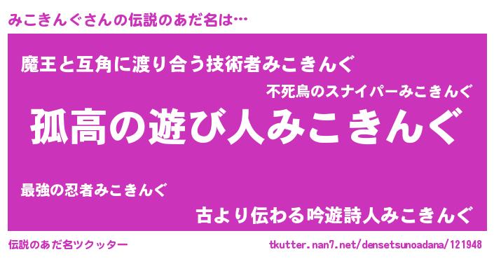 | ヘコむあだ名 | 『みこっちょ』『みこきんぐ(小並感)』 |