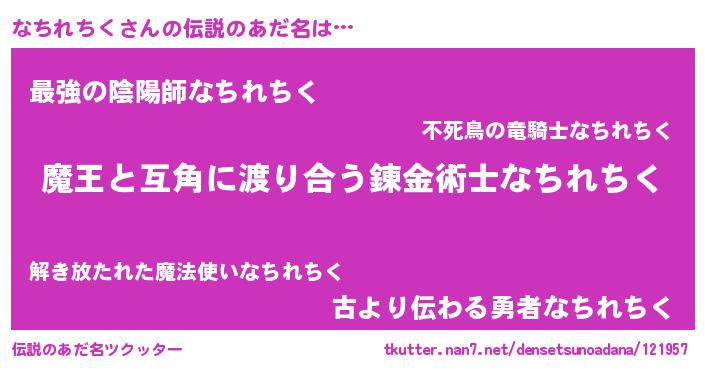 | ヒーロー風カッコイイあだ名 | 『友情の使者なちれちく』『仮面ナチダー』 |