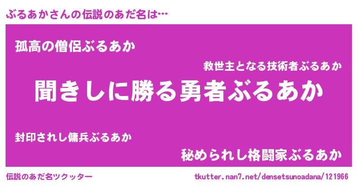 | 胡散臭い通販商品みたいなあだ名 | 『絶対に幸福をもたらす水素水…その名も「ぶるあか」』 |