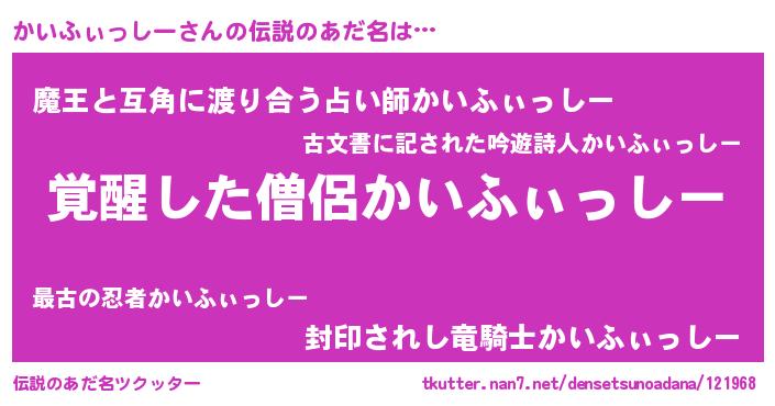 | 意味不明あだ名 | 『自称かいふぃっしー』 |