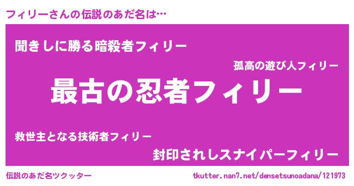 | 意味不明あだ名 | 『フィリーフォーエバー』『自称フィリー』 |