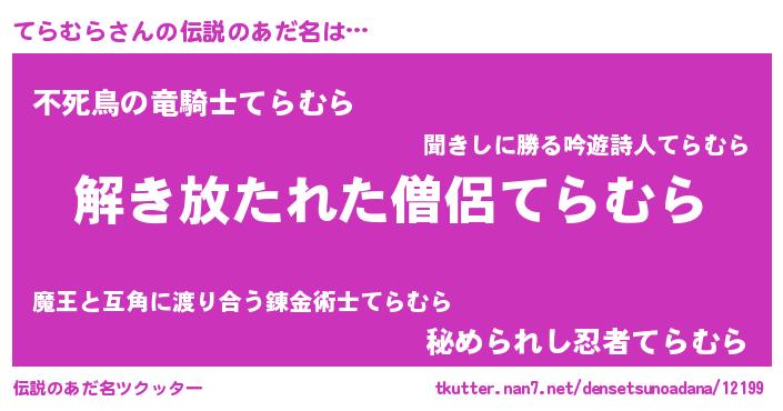 | 女子向けラノベタイトル風あだ名 | 『てらむらの卵を拾いまして』 |