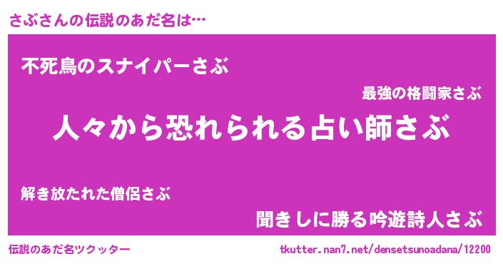 | ヒーロー風カッコイイあだ名 | 『仮面サブダー』『愛の使者さぶ』 |