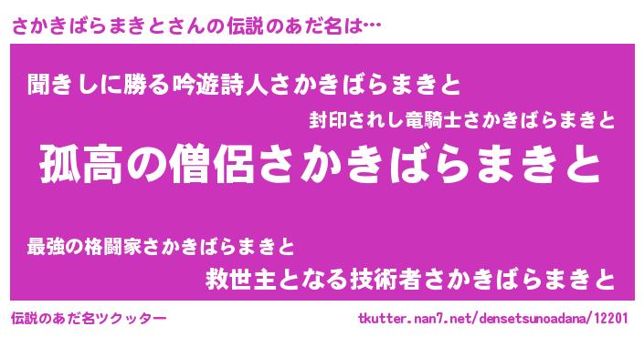 | ヒーロー風カッコイイあだ名 | 『黄金騎士サカ』『ネオサカキバラマキト』 |