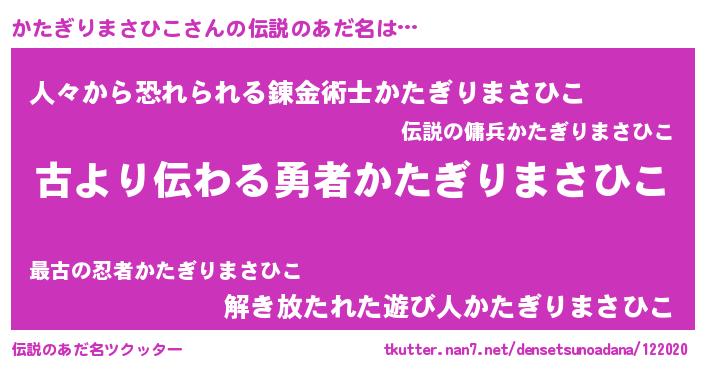 | 意味不明あだ名 | 『自称かたぎりまさひこ』 |