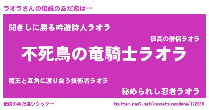 | ファンタジー風あだ名 | 『ラオフェル』『ラオディッシュ』 |
