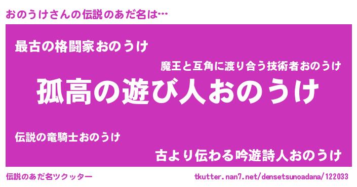 | ヒーロー風カッコイイあだ名 | 『黄金騎士オノ』『ウルトラおのうけマン』 |