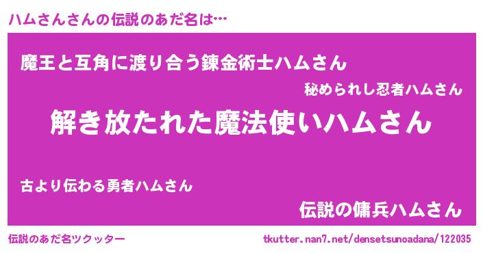 | 胡散臭い通販商品みたいなあだ名 | 『伝統あるサプリメント…その名も「ハムさん」』 |
