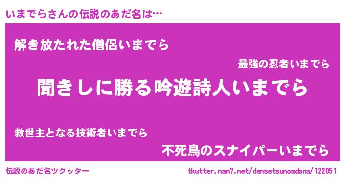 | 意味不明あだ名 | 『住所不定無職いまでら(12歳)』 |