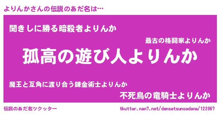 | 意味不明あだ名 | 『住所不定無職よりんか(89歳)』 |