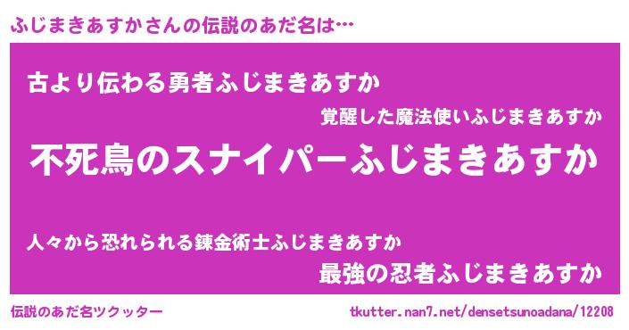 | 胡散臭い通販商品みたいなあだ名 | 『モテモテ間違いなし霊験あらたかなお札…その名も「ふじまきあすか」』 |