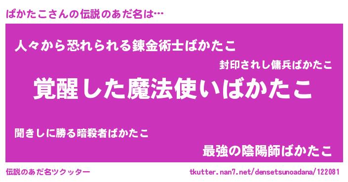 | ヒーロー風カッコイイあだ名 | 『炎刃騎士バカ』『正義の使者ばかたこ』 |