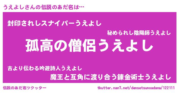 | 意味不明あだ名 | 『とにかく怪しいうえよし』 |