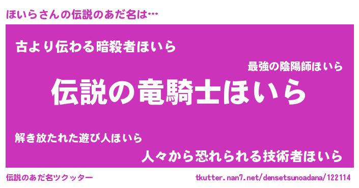 | 男性向けラノベタイトル風あだ名 | 『ほいらの憂鬱』『緋弾のホイラ』 |