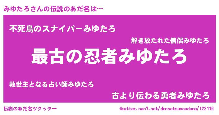 | 男性向けラノベタイトル風あだ名 | 『やはりみゆたろの青春ラブコメはまちがっている 』 |