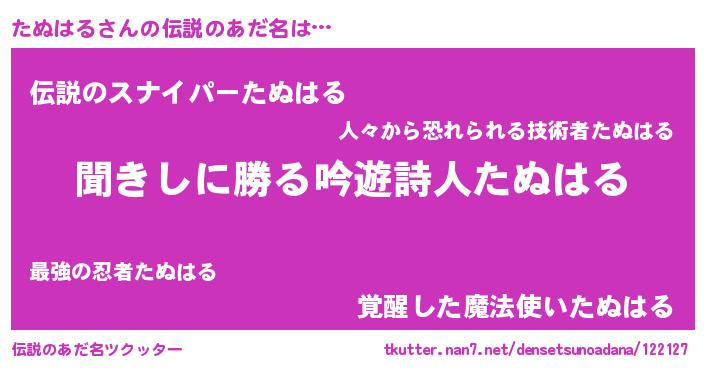 | ヒーロー風カッコイイあだ名 | 『ネオタヌハル』『スーパータヌハル』 |