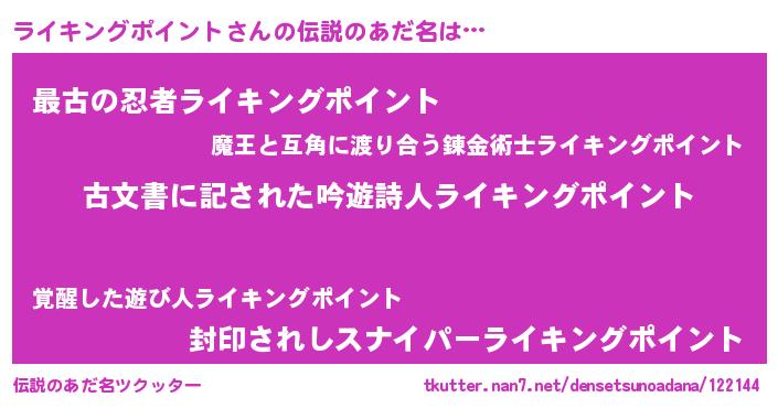 | 意味不明あだ名 | 『永久保存ライキングポイント』 |