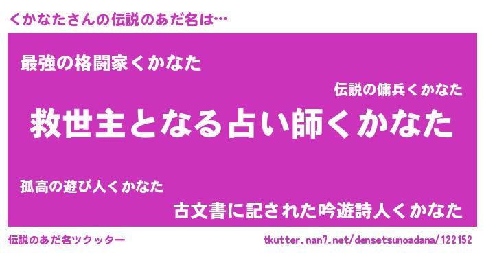 | ヒーロー風カッコイイあだ名 | 『慈愛の使者くかなた』『ネオクカナタ』 |