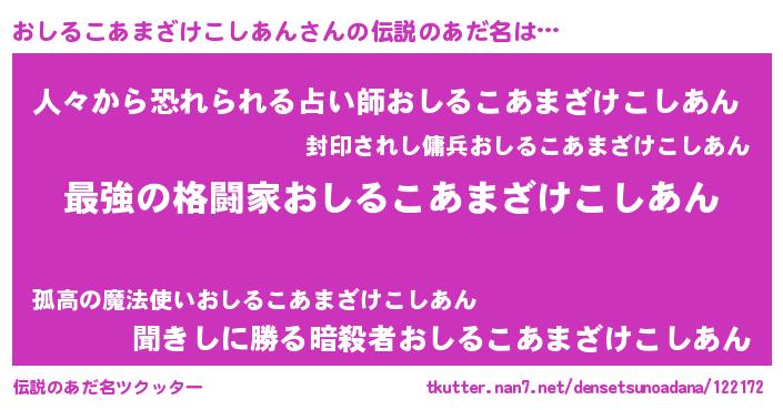 | 意味不明あだ名 | 『住所不定無職おしるこあまざけこしあん(11歳)』 |