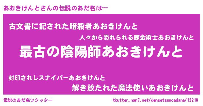 | ファンタジー風あだ名 | 『エターナルアオキケントー』 |
