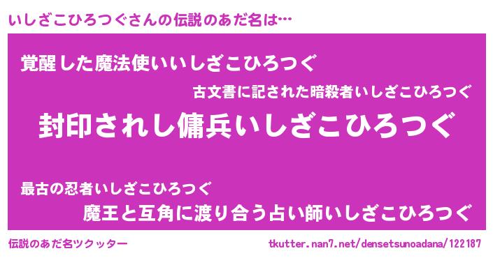| ヒーロー風カッコイイあだ名 | 『スーパーイシザコヒロツグ』 |