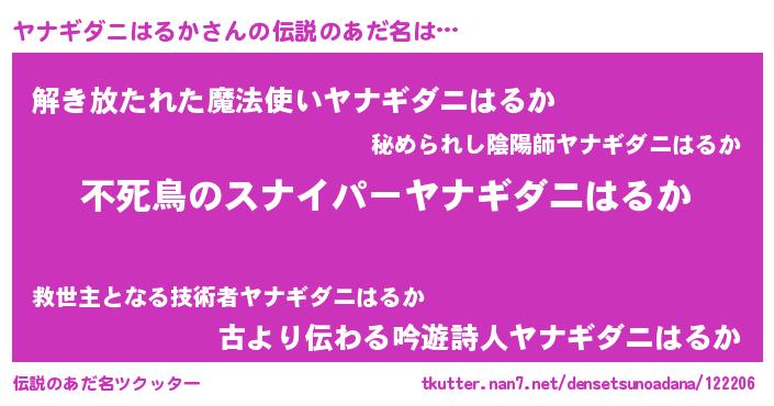 | 胡散臭い通販商品みたいなあだ名 | 『モテモテ間違いなし霊験あらたかなお札…その名も「ヤナギダニはるか」』 |