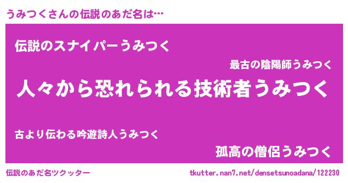 | ヒーロー風カッコイイあだ名 | 『友情の使者うみつく』『魔戒騎士ウミ』 |