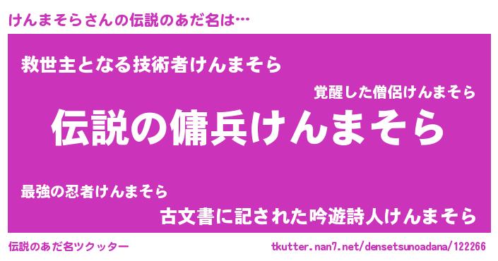 | ヒーロー風カッコイイあだ名 | 『スーパーケンマソラ』『ネオケンマソラ』 |