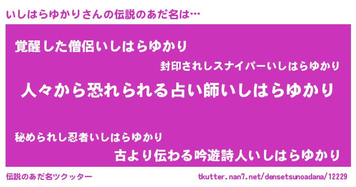 | 男性向けラノベタイトル風あだ名 | 『おまえをオタクにしてやるから、俺をいしはらゆかりにしてくれ! 』 |