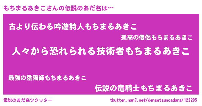 | ヘコむあだ名 | 『もちまるあきこ(小並感)』『もちふぇ~』 |