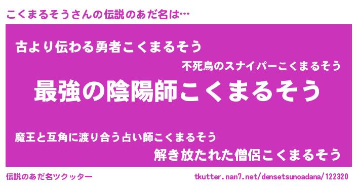 | 意味不明あだ名 | 『こくまるそうフォーエバー』 |