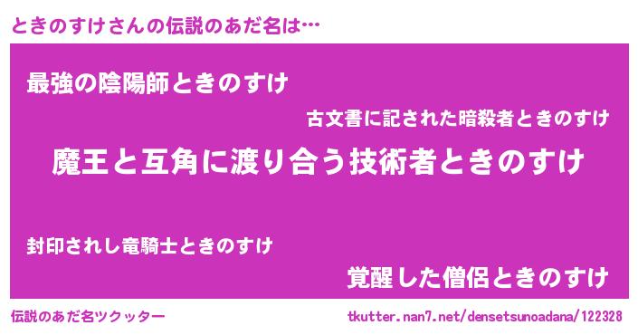 | ヒーロー風カッコイイあだ名 | 『仮面トキダー』『天空の使者ときのすけ』 |