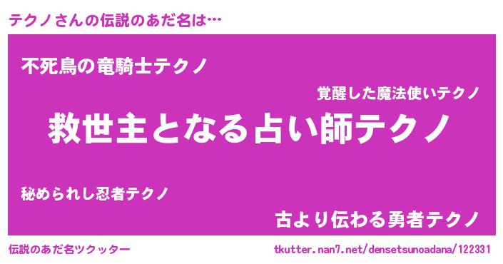 | ヒーロー風カッコイイあだ名 | 『仮面テクダー』『最強戦士テクノ』 |