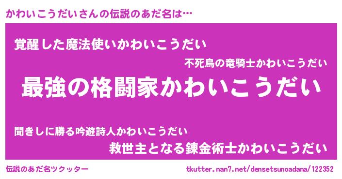 | 意味不明あだ名 | 『かわいこうだいフォーエバー』 |