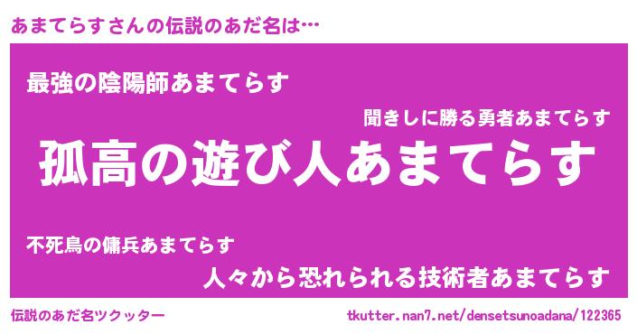 | 意味不明あだ名 | 『とにかく怪しいあまてらす』 |
