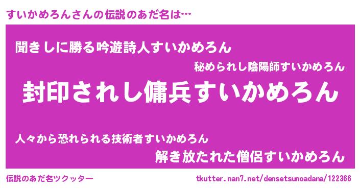 | 男性向けラノベタイトル風あだ名 | 『この素晴らしい世界にすいかめろんを!』 |
