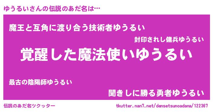 女子向けラノベタイトル風あだ名 | 『ゆうるい様がみてる』『ゆうるい恋絵巻』 |