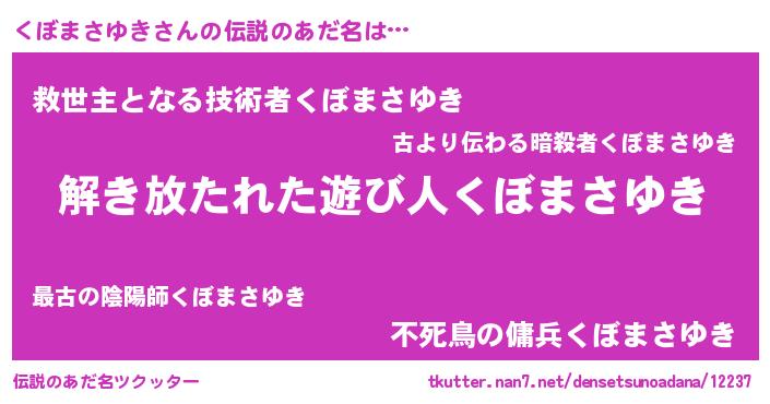 | 男性向けラノベタイトル風あだ名 | 『冴えないくぼまさゆきの育てかた』 |