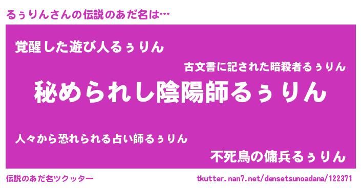 | ファンタジー風あだ名 | 『エターナルルゥリンー』『ルゥフェル』 |