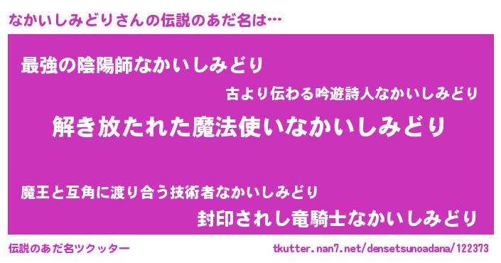 | 女子向けラノベタイトル風あだ名 | 『なかいしみどりの卵を拾いまして』 |