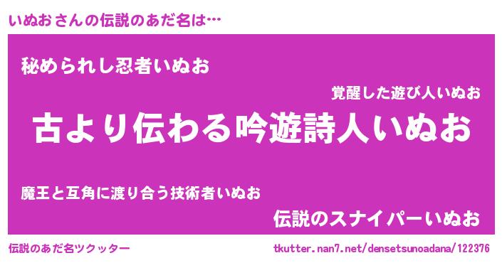 | ヒーロー風カッコイイあだ名 | 『ネオイヌオ』『ウルトラ戦士イヌオ』 |