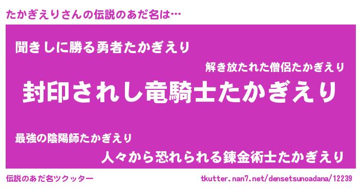 | ヒーロー風カッコイイあだ名 | 『スーパータカギエリ』『ネオタカギエリ』 |