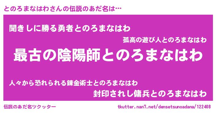 | ヒーロー風カッコイイあだ名 | 『サイバー戦士トノロマナハワ』 |