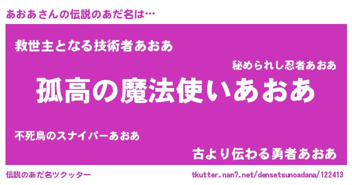 | ヒーロー風カッコイイあだ名 | 『魔戒騎士アオ』『慈愛の使者あおあ』 |